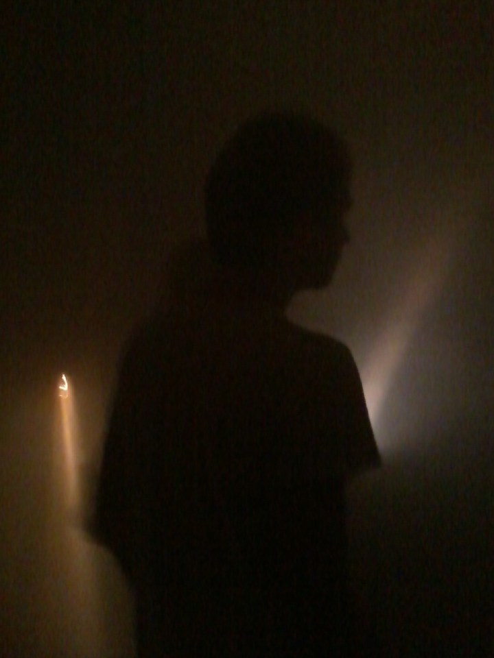 On September 10th with some friends visiting from out of town, I stepped into the art space / collective living thingy at 1337 H St NE (Wash, DC). We were handed flashlights and told to use them to explore two stories of fog filled rooms. Ambient, sometimes discordant music from Bluebrain started playing from various rooms and as we passed through each room the texture of the music changed as well, determined by changes in it over time but also our proximity or distance from speakers each playing different things in different rooms. The experience was dynamic. People were reduced to shapes and gestures, the fog making their movement through the space tentative, delicate, their silhouettes becoming part of the ‘art.’ It was until seven or eight minutes in that our group realized that we could turn our flashlights. We turned them off and stood in the darkest room, shaking, with the floor, from the musics’ reverberation, and generally melting into the space.