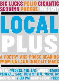 Get ‘local’ ‘flavor.’ This list is divided into readings I will be at and readings I very sincerely wish I could be at. A number of these involve presses based in and around DC.